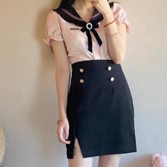 韓国ファッションの洗練された魅力を取り入れたセーラー服とミニスカのセットです。