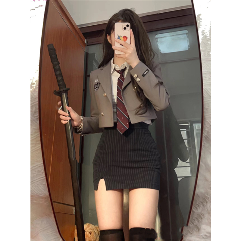洗練されたグレーのブレザーセットは、制服コスプレファン必見の一品。高品質な仕立てと細部にわたるデザインが魅力で、特にチェック柄スカートとの組み合わせは抜群。上品さと可愛らしさが絶妙に融合し、コスプレシーンで一際目を引く存在感を放つ。魅惑的なスタイルで、あなたのコスプレ体験を一層特別なものにする。